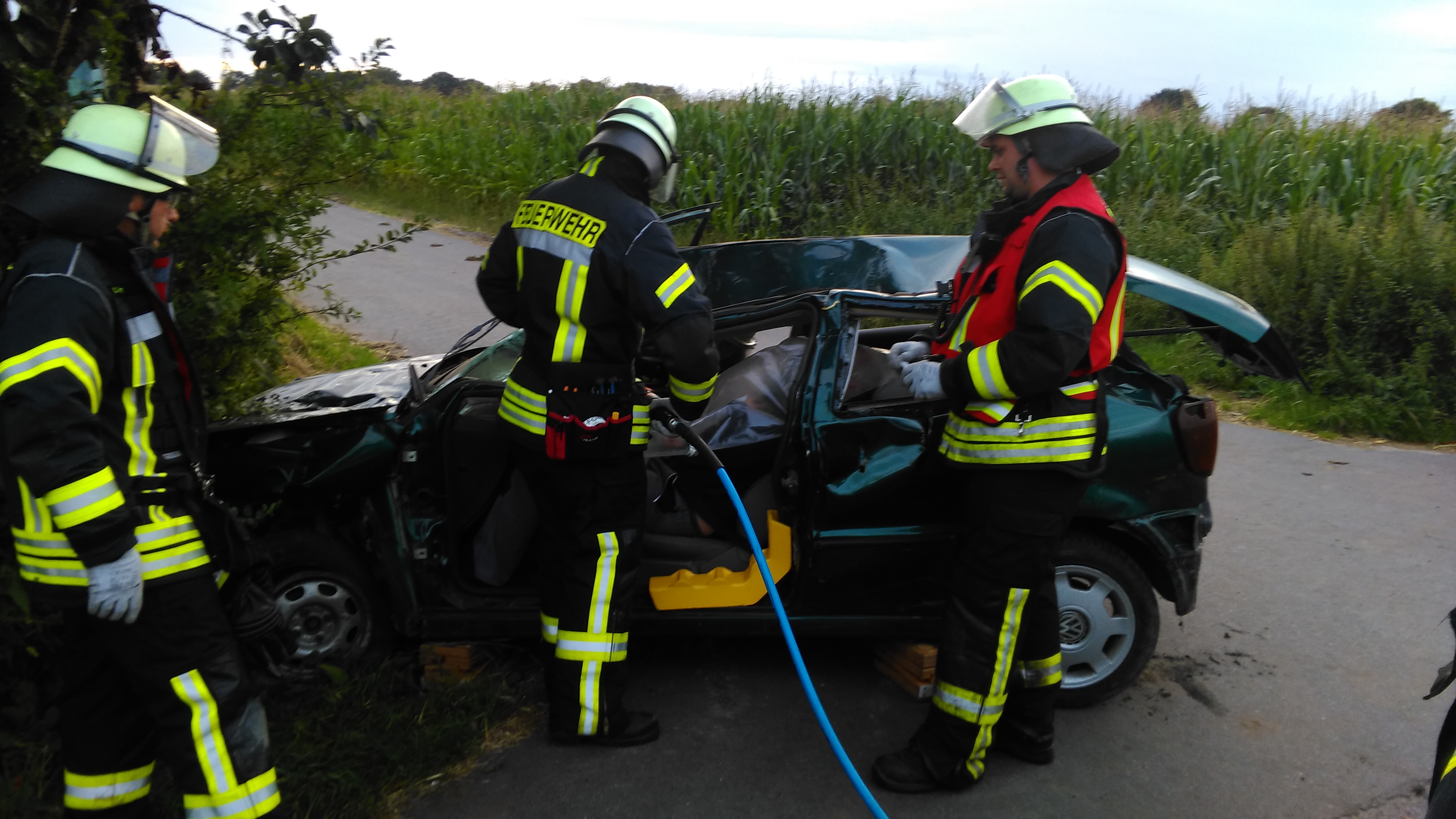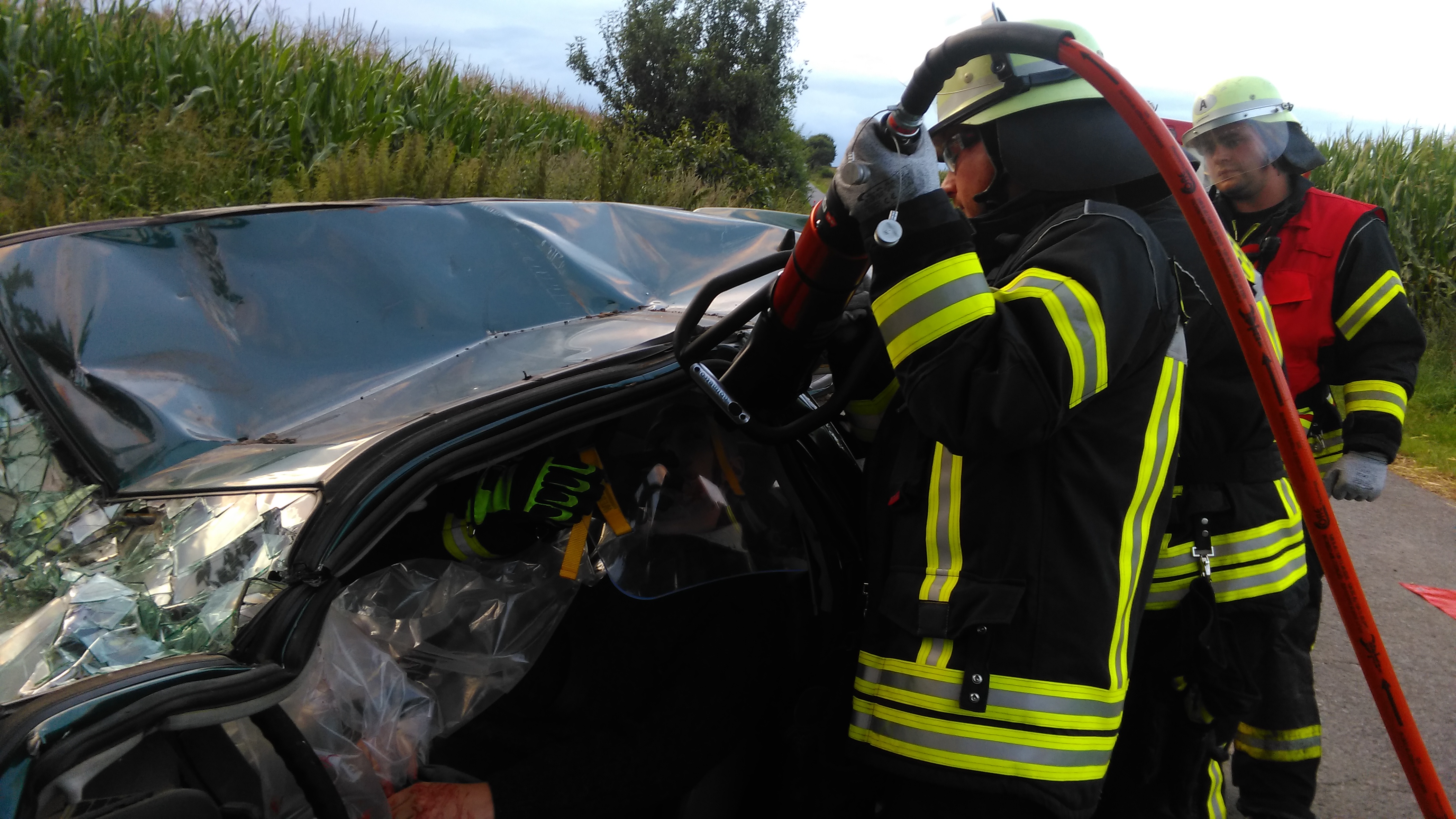 Unter realitätsnahen Bedingungen musste eine eingeklemmte Person aus dem Auto befreit werden.